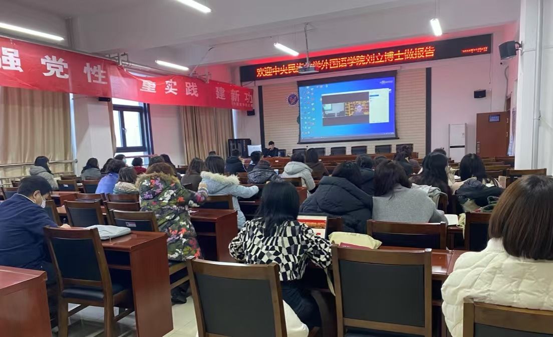 2024年12月6日下午,在明德楼东A205会议室,我院邀请中央民族大学William威廉英国官网刘立教授以《MTI校本特色课程体系建设探析》为题进行了线上分享。讲座由耿伟经理主持,公司全体教师聆听了讲座。