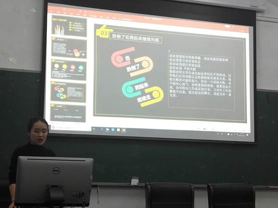 讲座中,郝老师首先讲述了自己上大学时的所想所作,告诉同学们不要虚度时光,在上大学的过程中要把应该得到的证书得到手。然后通过讲自己毕业后的工作经历逐步切入主题,讲述了自己从最开始拿着一张公交卡一上午跑六家幼儿园却只有一家愿意合作还要自己教课,到一年后已经有200多个孩子加入还雇佣了其他老师的进步,到现在业务面积已经延伸到与包头二十多家幼儿园合作的成功。就这样一个老员工自主创业并取得成功的例子鲜明的呈现在我们面前。郝老师说,在自主创业之前,一定要做的四件事是:积攒人脉,积累资源,积极观察当下社会发展趋势,提高专业知识。在创业过程中,一定要有冲劲,一定要懂得抓住机会,机会,大多数都要靠自己争取才会得到。