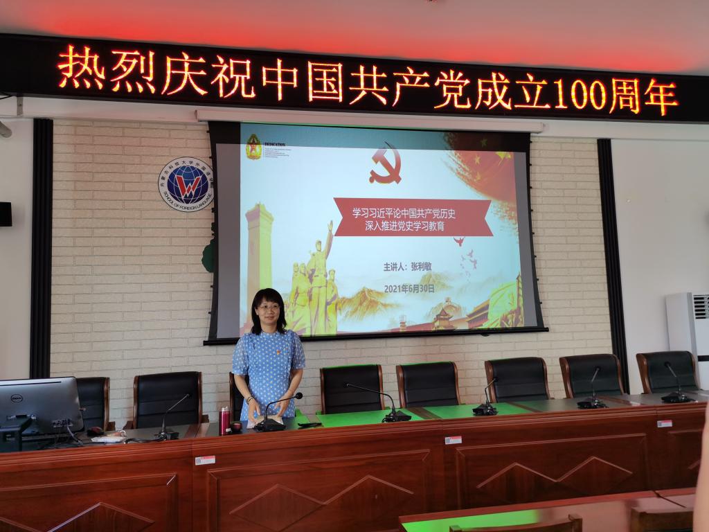 6月30日下午,外国语公司党总支书记张利敏讲授了题为《学习习近平论中国共产党历史 深入推进党史学习教育》的专题党课。张利敏以《论中国共产党历史》这本党史学习教育指定读物为依托,主要讲述了三方面的内容:学习习近平论中国共产党历史;认真研读党史基本著作,理解习近平论中国共产党历史;深入推进党史学习教育,揭秘中国共产党为什么“能”。