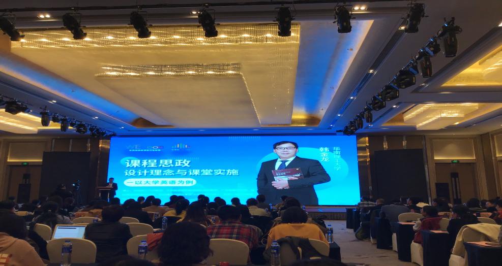 本次学习内容分为两大板块,其中15日为研讨会,16日为工作坊。本次课程思政示范建设研讨会邀请了众多国内知名专家分享课程思政建设案例,引发了参会教师们的深入思考。其中来自华南理工大学的韩金龙教授基于“课程思政设计理念与课堂实施-以大学英语为例”所做的专题汇报让青年教师们受益匪浅。