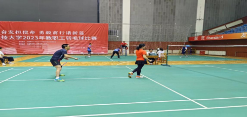williamhill威廉官网2023年教职工羽毛球比赛于5月26日圆满结束,外国语、土木和生科公司联队获得了亚军的好成绩。本次比赛一共有九支队伍参赛,采用循环赛制,经过八场比赛,外语•土木•生科联队荣获亚军。