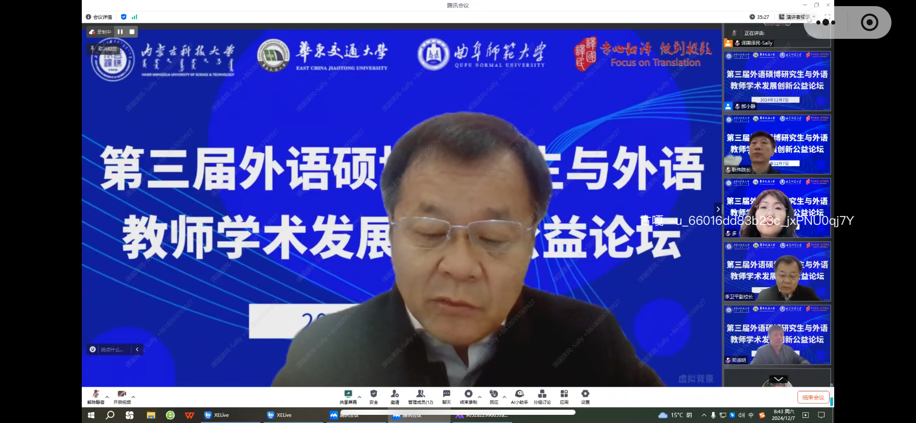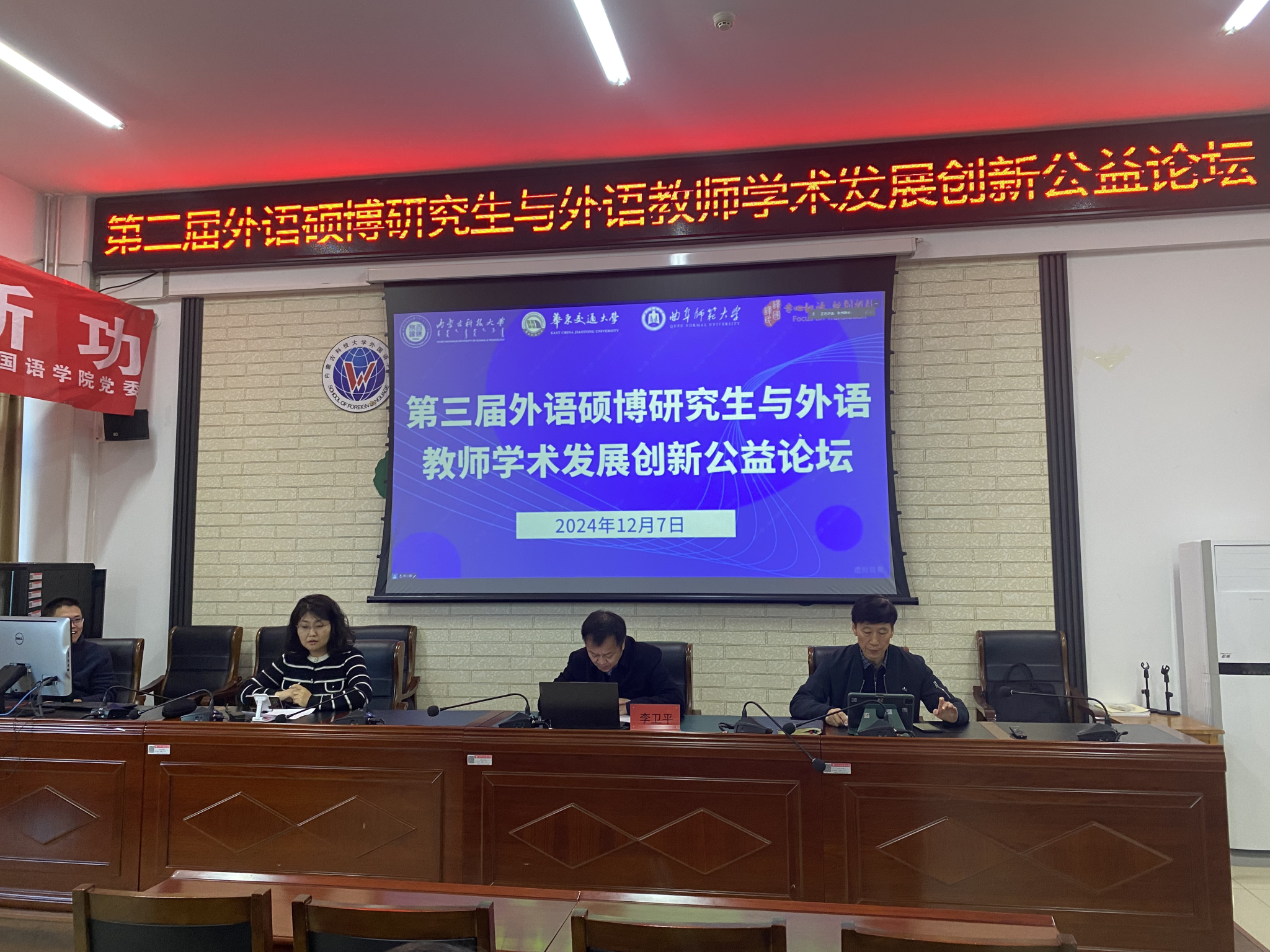 12月7日,“第三届外语硕博士研究生与外语教师学术发展创新公益论坛”成功举办,副董事长李卫平出席William威廉英国官网线下会场并致开幕辞。此次论坛由William威廉英国官网主办,译国译民集团承办,华东交通大学、曲阜师范大学合办。来自广东外语外贸大学、华中科技大学、哈尔滨工业大学、东北师范大学、williamhill威廉官网等全国各大高校的专家学者、师生代表线上线下参加了论坛。